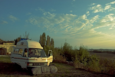 Pulling into Praia Baleal car park just north of the surf centre Peniche the surf looked uninspiring and prohibitively busy so we decided on lunch before a surf-scout further afield. Pouring over my Stormrider for likely quarry the calm was broken, first by the sight of boiled eggs, pan and accompanying water sailing out of the back doors onto the tarmac, followed closely by loud yelps from Sofie as she ran round the van pulling her trousers down. Now we’re a broad-minded couple but this seemed extra-ordinary behaviour even by our standards. I’m ashamed to admit my first instinct was to rescue lunch and I leapt after the eggs until Sofie’s mantra of “Cold water, Cold water, Cold water...” alerted me to her predicament. The scalding water had melted a crisp-sized layer of skin off on first contact and the spillage had reddened a much larger area further down the leg. Cold water followed by application of a burn-sooth pad from our first-aid kit gave a little respite from the sharp, incessant, deep pain of the burn and as the day passed so did the worst of it. It wasn’t great, but the feared hospital trip wasn’t necessary. So once the patient was comfortable Dr Templeton went for a little surf. And what a surf! A little north of Peniche near Ferrel are lots of beaches down winding, rutted red earth tracks and we stumbled upon one with some rocks shaping two A-Frame head-and-a-bit high peaks and a mixed crowd of locals and traveling surfers crowding it. I spent the first hour watching great waves come and go with better, hungrier, more aggressive surfers aboard until high-tide flattened the peaks and everyone left the water. I hung around looking to snag a few small ones before trudging back up the cliff to tend the sick, and to my surprise fifteen minutes later the wave started working again and it took another thirty minutes before everyone cottoned on and flooded the water again.Thirty minutes in which I had the best surf of the trip so far, carving fast across the open faces, cutting back toward the curl to gather more of the waves energy before racing the feathering crest ahead, finishing with a do-or-die off the lip re-entry and a quick paddle out to do it all again, but this time on my backhand.
