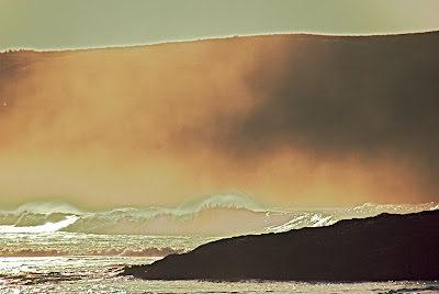 As these six, maybe seven, foot waves, with faces soaring almost 12 feet above the prone surfer, pitch beyond vertical and the seething apex is launched out beyond the face the explosion as the two water masses collide impacts on all of my senses combining to produce a solitary survival emotion - fear. At the first signs of these deliquent undulations the skirmish begins. I paddle toward the horizon hoping that my timing is fortunate and I manage to scrabble over the back of the beasts traveling in packs of 4 or 5 increasing in size. To be caught just inside the breaking wave with it’s tumbling, towering, impenetrable wall of whitewater is to be spun and tumbled underwater, limbs flayed in unfeasible directions like a rag-doll until it releases it’s grip allowing you to surface 30 yards back toward shore gasping for air. Worse still is to get the timing absolutely, utterly wrong and for the pitching lip of the wave to smash onto you at the point of impact adding a wind-ing body blow to the mix….. But sometimes, and to be fair to myself more often now than not, the timing of the paddle out combines, to quote Hansen, with “Pace, power & technique” and I dive the nose of the board under the water a few feet before the lip crashes down, I dig deep enough with all the might I can muster to get under the impact turbulence and the centrifugal forces which are pitching the lip forward work in my favour and suck me under the wave and out of the back, to momentary safety before the next wave approaches…
